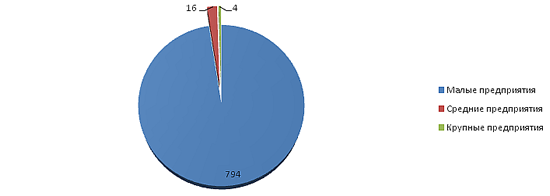 Оставшаяся часть распределилась между "Средними" - 16 предприятий (2%) и 4 предприятия из категории "Крупных" с 0,5% от общего числа новых юридических лиц.