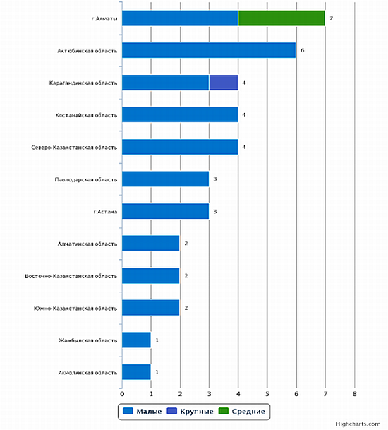 В остальных регионах РК, по данным официальной статистики не было зарегистрировано новых производственных предприятий.