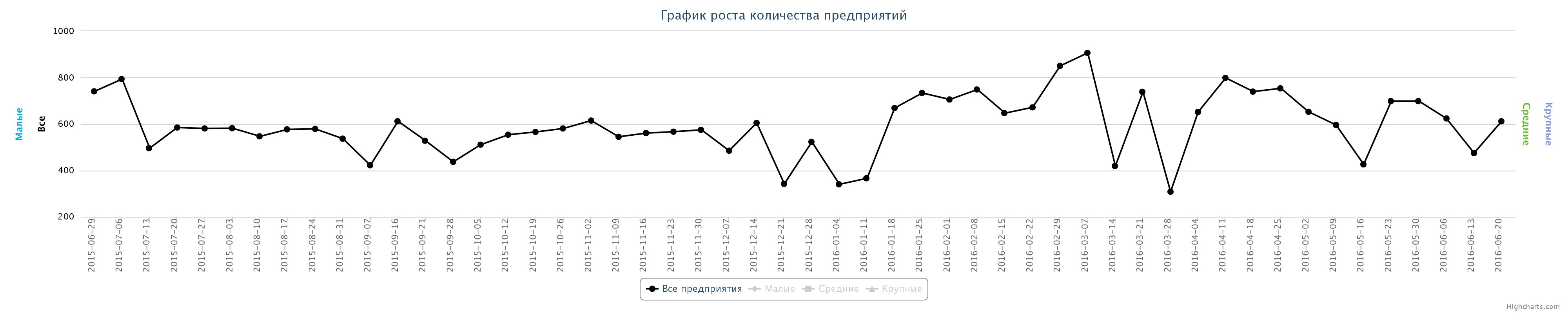 Это отчет по изменению количества зарегистрированных предприятий в базе данных РК. Вы можете наблюдать реакцию бизнеса на экономические, финансовые, социальные и политические события в РК: в каких сферах наблюдается массовое закрытие организаций и в каких отраслях создаются новые компании.