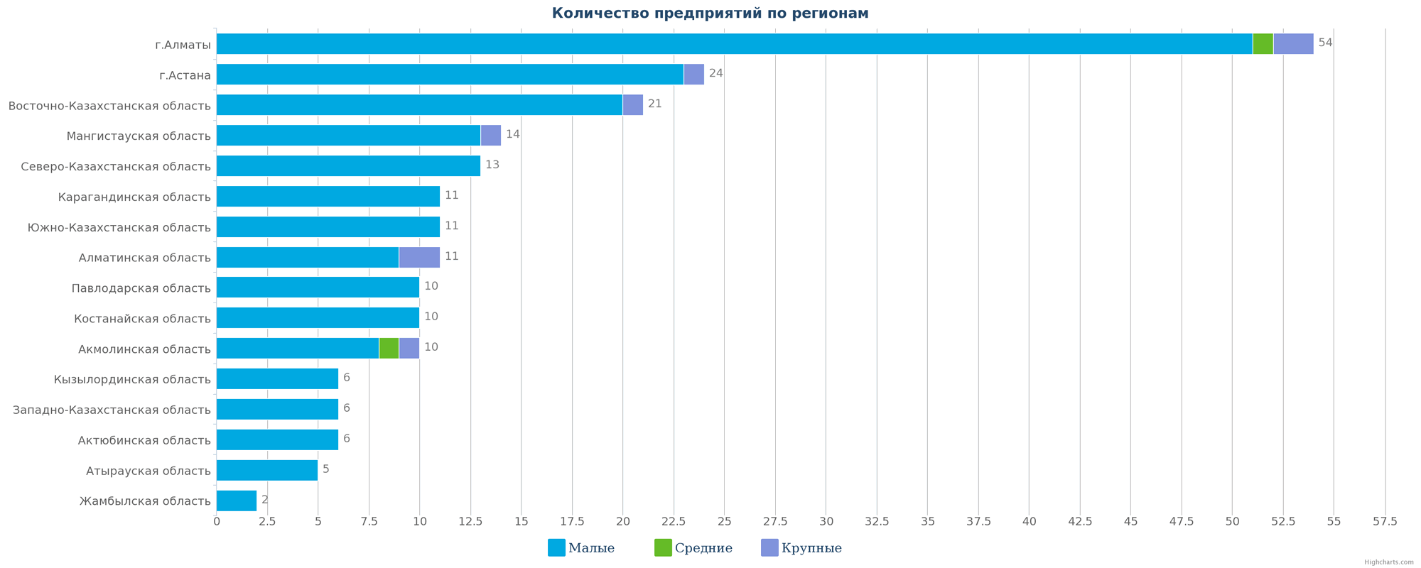 Замыкает тройку Актюбинская и Южно-Казахстанская области – по 47 новых предприятий, по 8,10%.